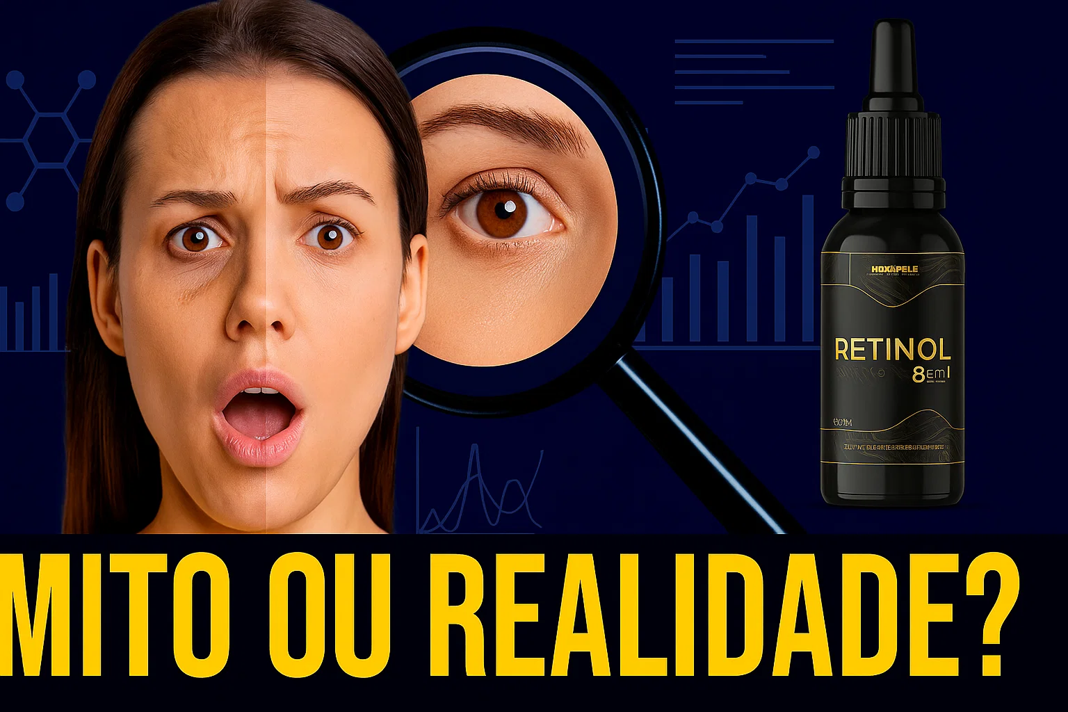 As olheiras são uma preocupação comum, afetando pessoas de todas as idades devido a fatores como genética, cansaço, falta de hidratação ou envelhecimento. Muitos se perguntam se o retinol para olheiras é uma solução eficaz ou apenas um mito. Conhecido por seus benefícios anti-rugas e clareadores, o retinol, um derivado da vitamina A, tem sido alvo de estudos e depoimentos que exploram sua eficácia contra olheiras. Neste artigo, analisamos se o retinol para olheiras realmente funciona, com base em evidências científicas, depoimentos de usuários e a ação de produtos como o Retinol 8 em 1 da Hidrapele. Vamos esclarecer mitos, apresentar realidades e oferecer dicas para usar o retinol com segurança na área dos olhos.